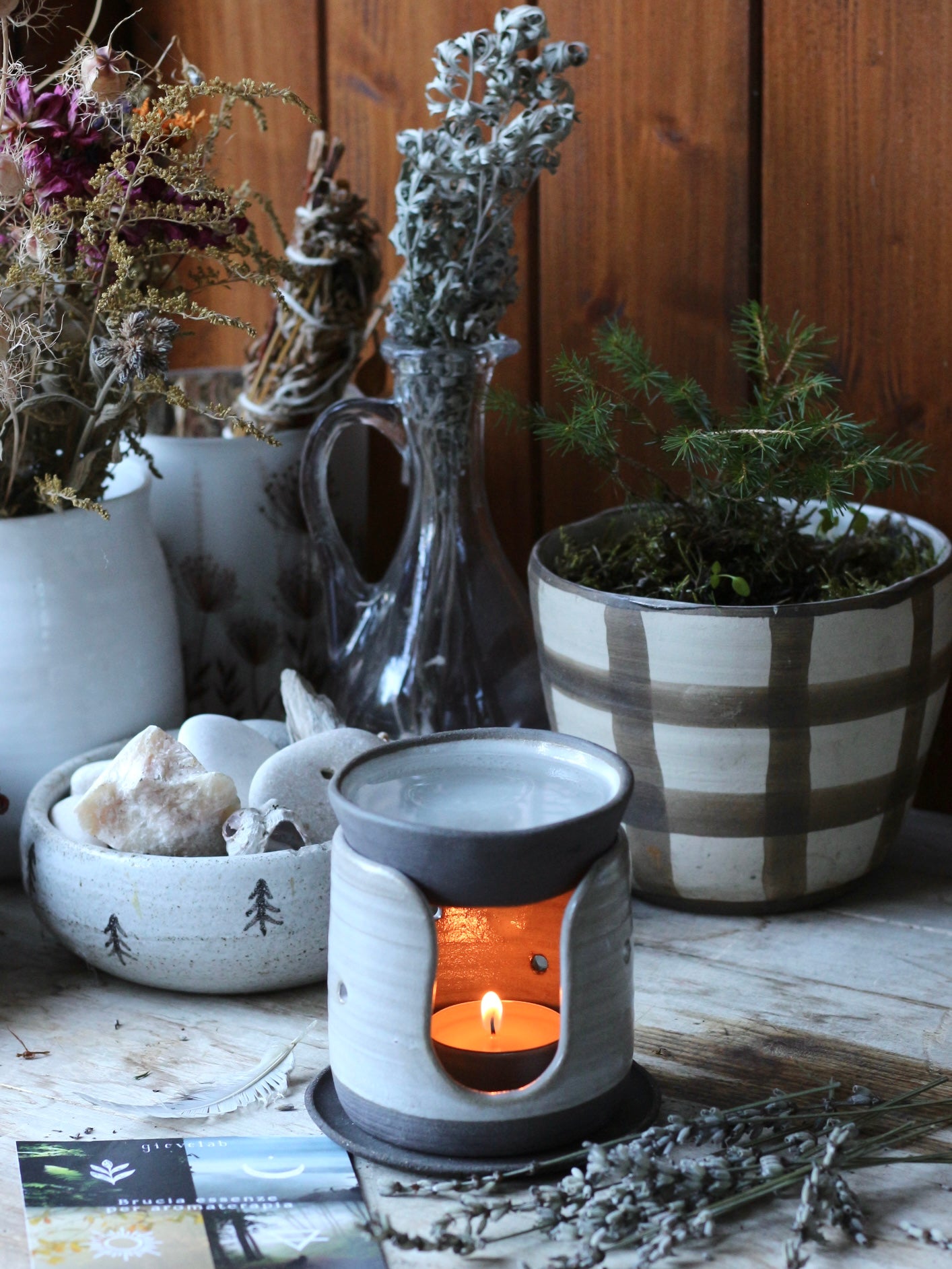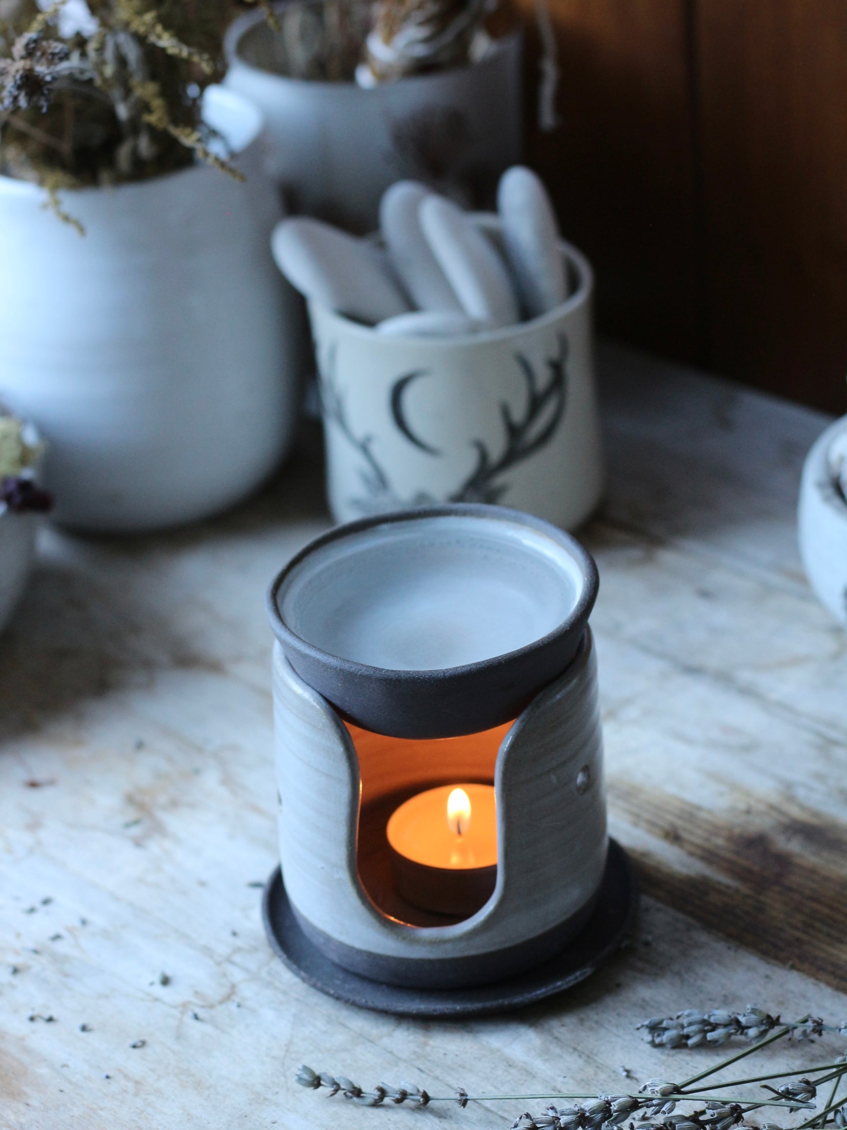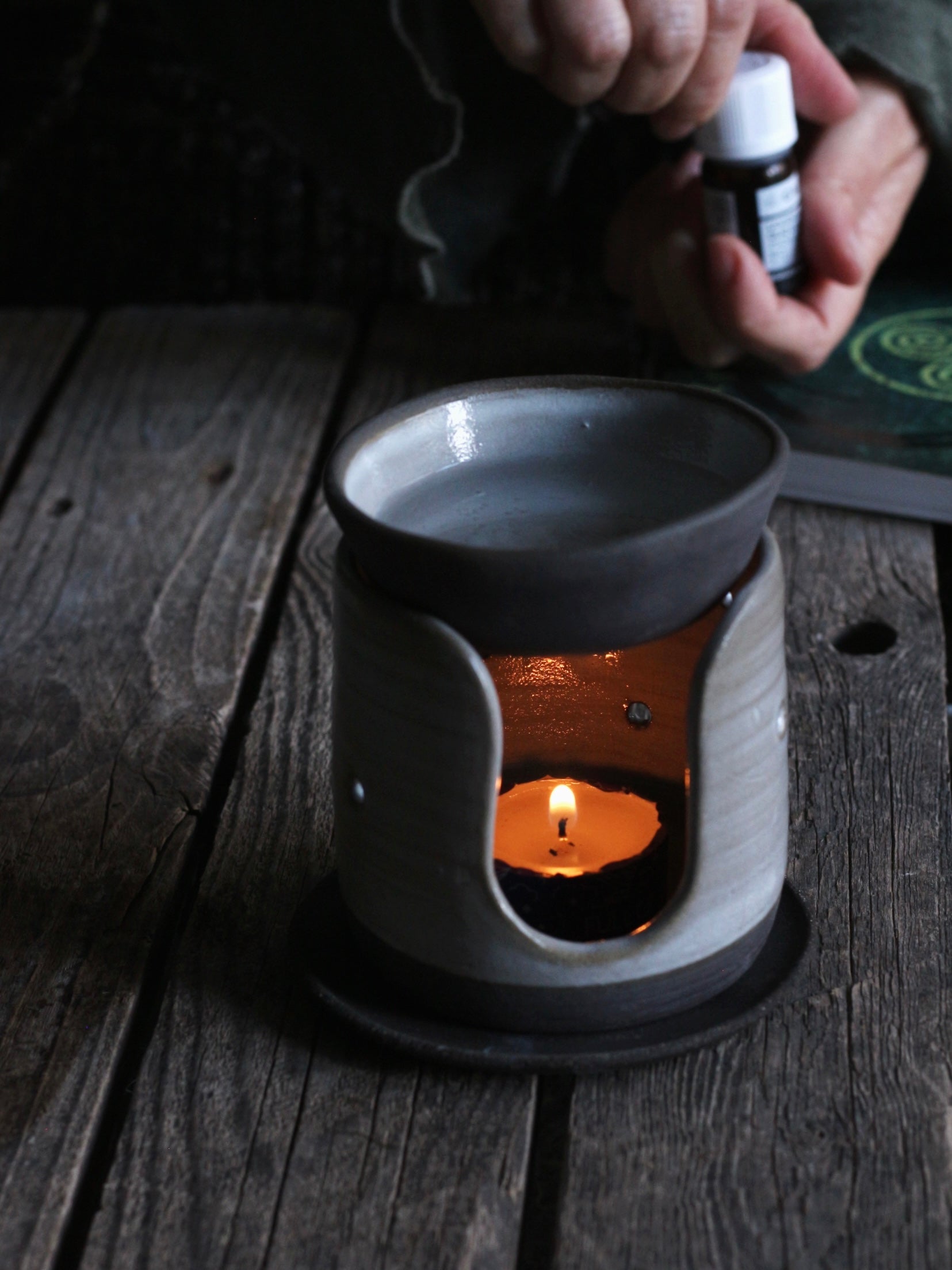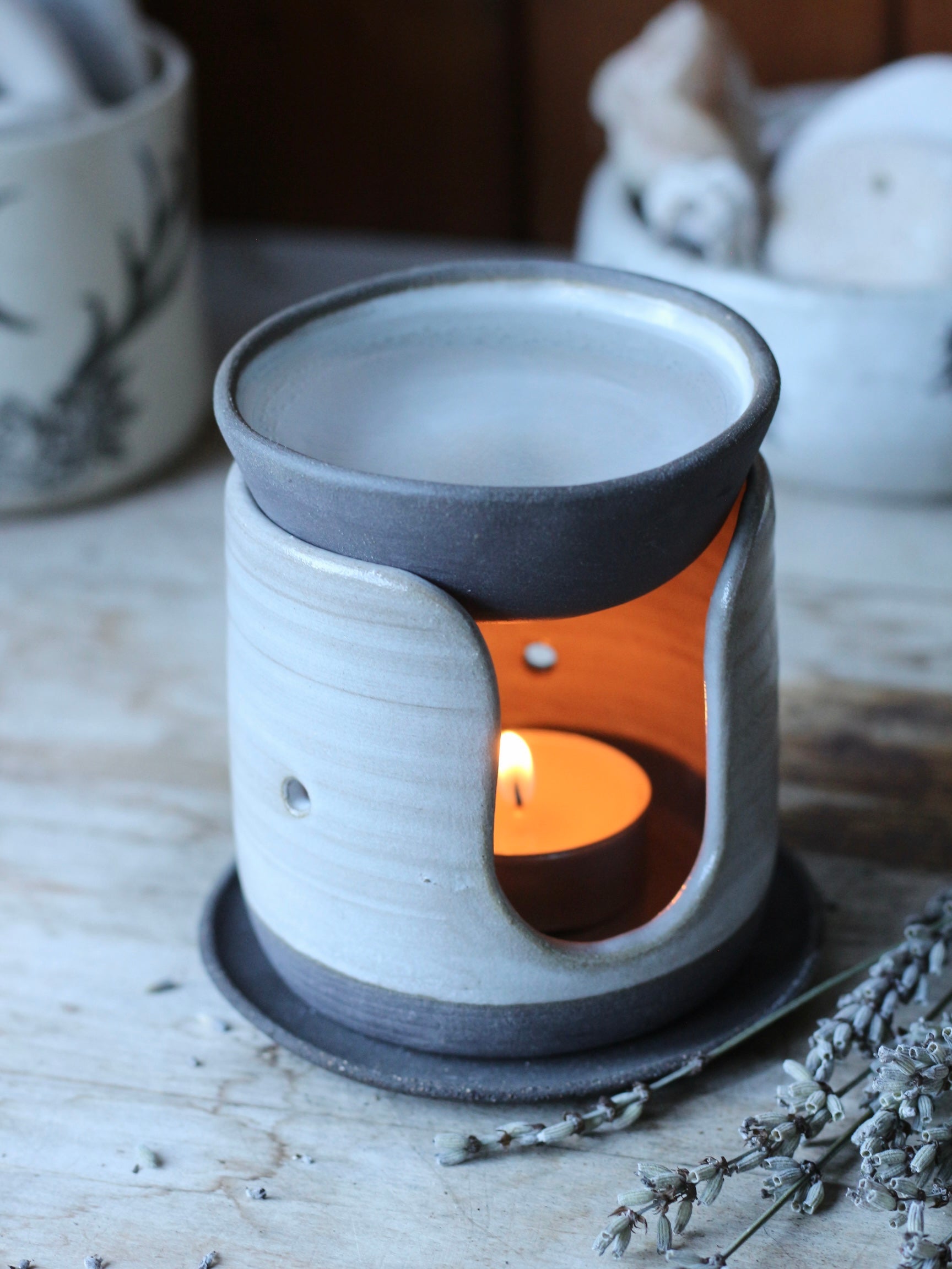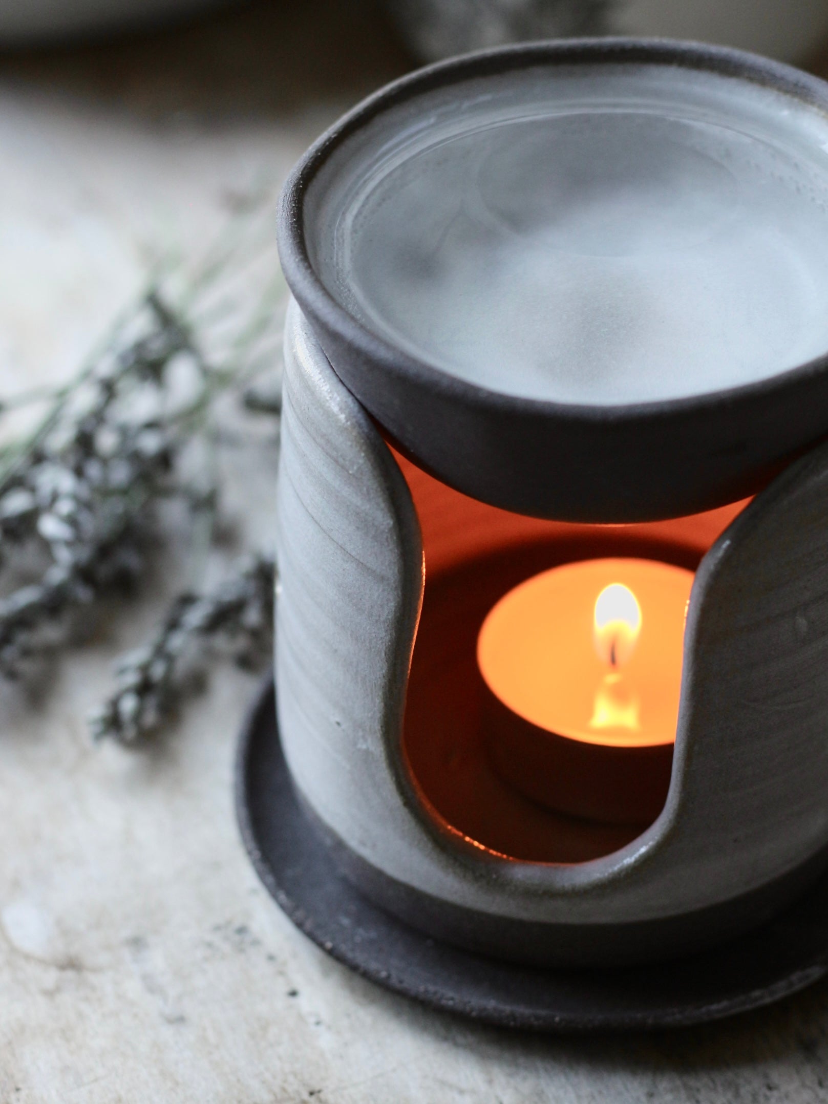 Non un oggetto per la tavola, questa volta, ma un prezioso strumento di benessere per anima e corpo! Vi presentiamo il nostro primo brucia essenze per aroma terapia: è realizzato in un elegantissimo gres nero, cotto ad alta temperatura, con coppetta a contrasto e piattino d'appoggio (nr. 3 parti). L'acqua contenuta nella coppetta supera la durata della candelina standard (3 ore), ma vi raccomandiamo comunque di spegnere la candela quando lasciate la stanza per qualche tempo. Questo oggetto è stato testato con un utilizzo continuativo di moltissime ore, dunque usatelo con tranquillità. Tutto il corpo in ceramica si scalderà leggermente, la coppetta sarà più calda per poter svolgere la funzione di scaldare l'acqua e diffondere l'aroma dell'olio essenziale nell'aria. Ogni parte del brucia essenze è lavabile in lavastoviglie. Enjoy!