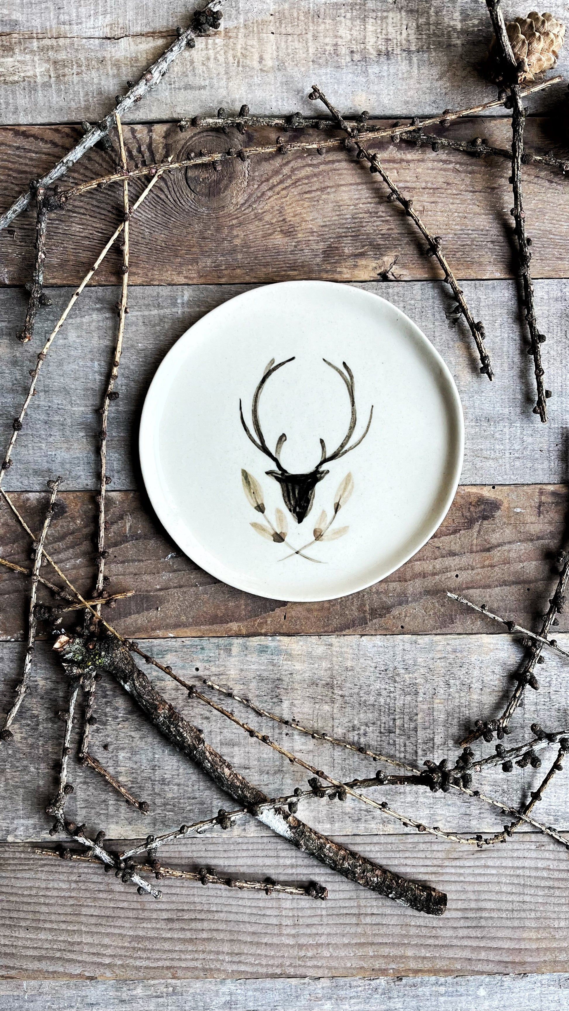Due piatti dessert per dare un tocco di selvatica bellezza alla vostra tavola: volpe e cervo. Quale sarà il vostro preferito? Abbinateli al piatto "Cerva" e "Antler" per respirare il bosco anche dentro le mura di casa! Realizzati in gres chiaro e dipinto a mano (per cui ogni pezzo sarà unico!), si possono lavare tranquillamente in lavastoviglie e mettere in forno o nel microonde. Dia. cm 17. Enjoy!